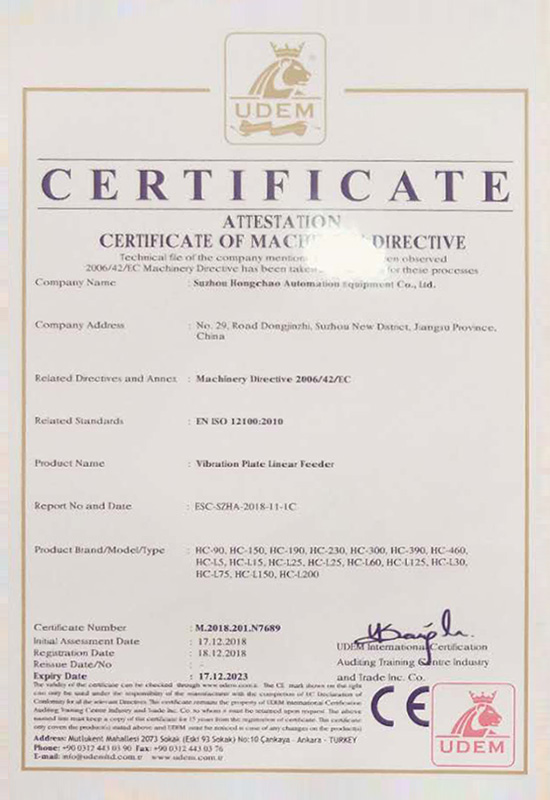 Our feeder systems are trustworthy. We passed the CE and ISO9001:2008 certification in 2013 and 2014 respectively.