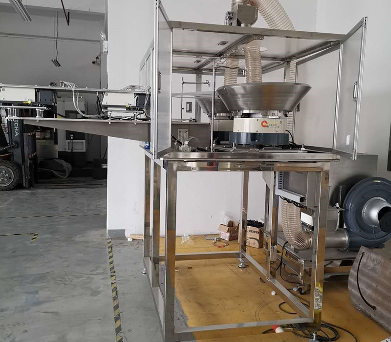 Process: The desiccants are transported to the linear slide in a specific direction through vibration, and then to the linear outlet. Remained parts will be recirculated to the feeder and be transported again. The whole circulation is smooth without blocking.